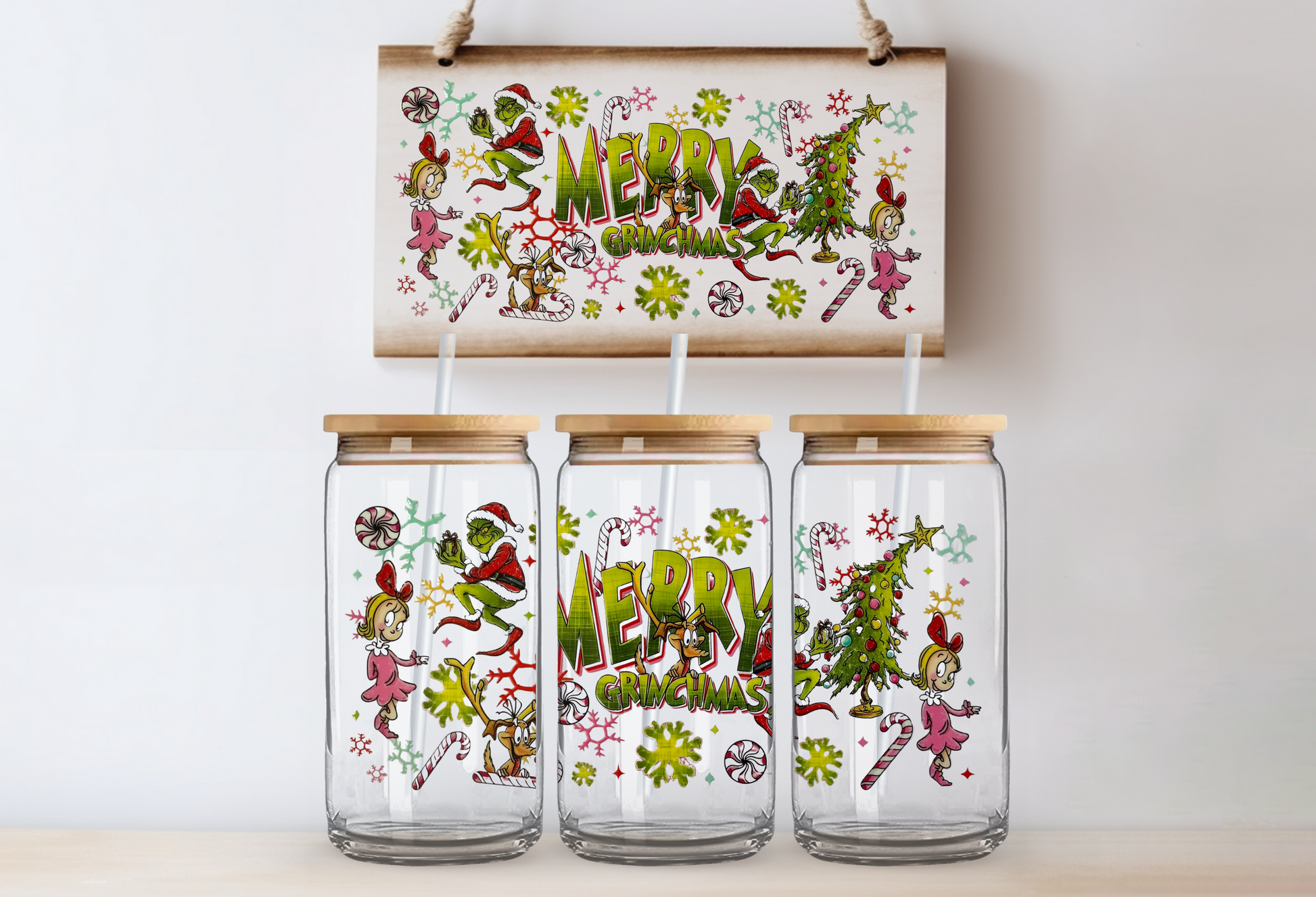 Green guy merry christmas 16oz uvdtf wrap